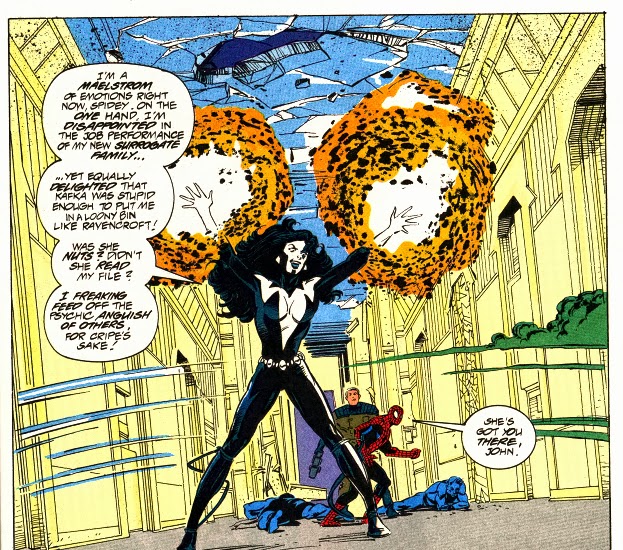 You see- Dr. Ashley Kafka is simply the stupidest, most infuriating character in all of comics! I can not stand her! -Going back to her appearances in (a favorite of mine) Spectacular Spider-Man, but more "recently" in those two Carnage one-shots I've been mentioning, ESPECIALLY in It's A Wonderful Life; she just seems to get more and more inept and fucking unbearable.She has never NOT failed!
