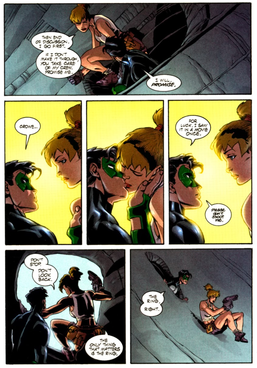 Also- if you were wondering how Aliens could even be a threat to a mighty Green Lantern?: He loses his ring at the start of his story-arc. That's how.