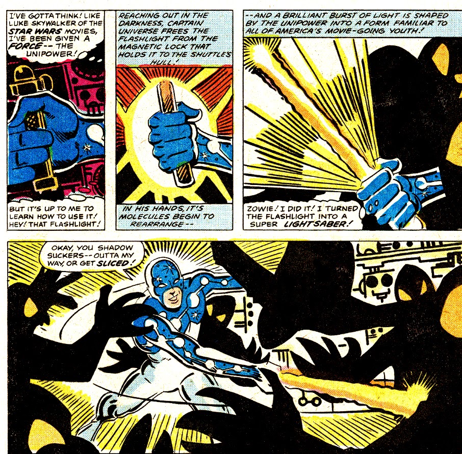 -I love the Captain Universe-concept. It works so much better than something like Dial H for Hero (in my opinion, anyways...) -But I noticed, while Reading Marvel Spotlight on... #9, that the Steve Coffin version of Captain Universe had some... weird exclamations... (And, I didn't read The Micronauts series, but I think he may also be mildly retarded...)