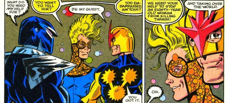 ~Here's some little things from New Warriors #22 that made me laugh. By Fabian Nicieza, and Mark Bagley.