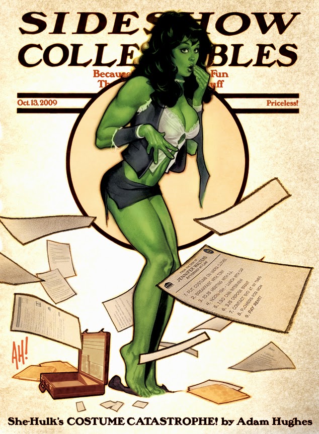 "adam hughes she-hulk" is a simple enough one.  Adam Hughes is one of my Top Ten favorite artists! (and it's a shame he doesn't do interiors anymore...)