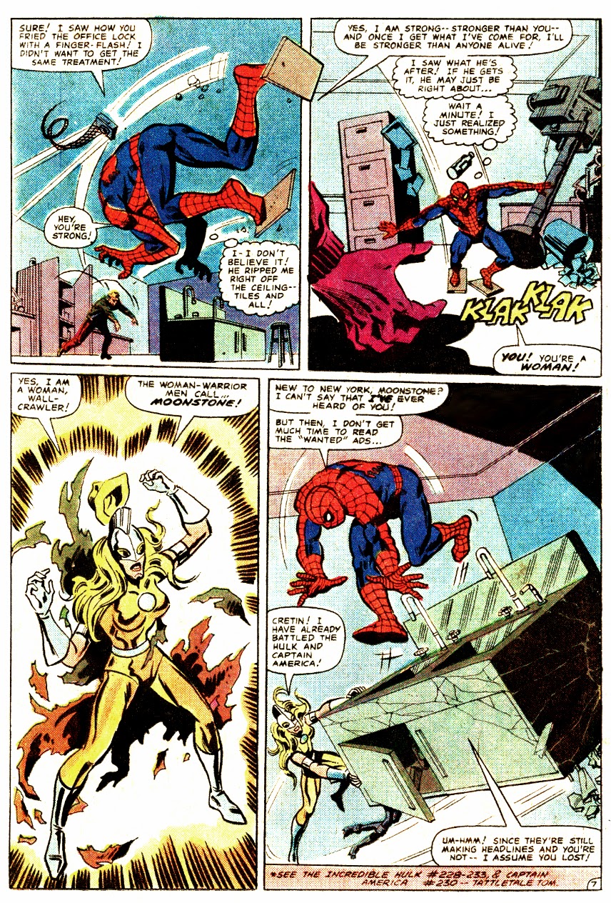CAREFUL, Spidey! That kind of honest reaction to someone being of a different gender than they were presenting themselves to be makes you "transphobic" according to some way too serious/way to the left/up their own ass comic bloggers! Don't let them see this or they'll try to force Bill Mantlo to apologize!