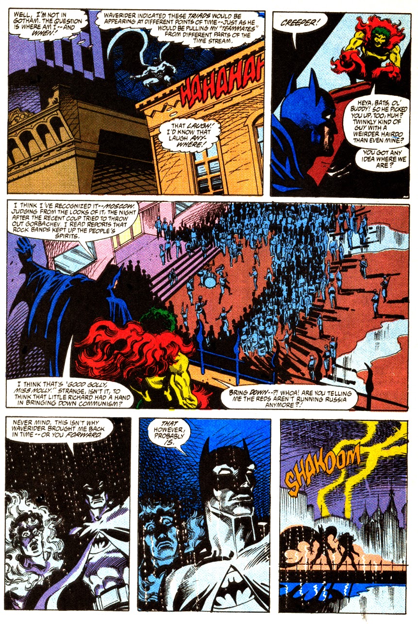 Issue one features Present-day (1992) Batman, Firestorm from the early 80's, Creeper from the early 70's, Ultra Boy- obviously from the future... because comics... and the motherfucking SPECTRE!: