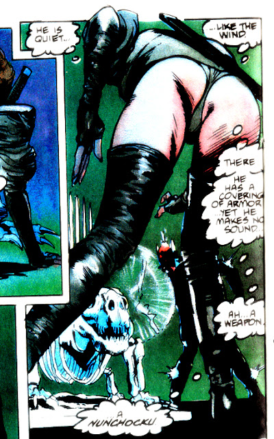 -So, much to the shock of no one- his pencils on 1987's Samuree #1 by Continuity Comics feature a lot of, what I call; "taint-shots":
