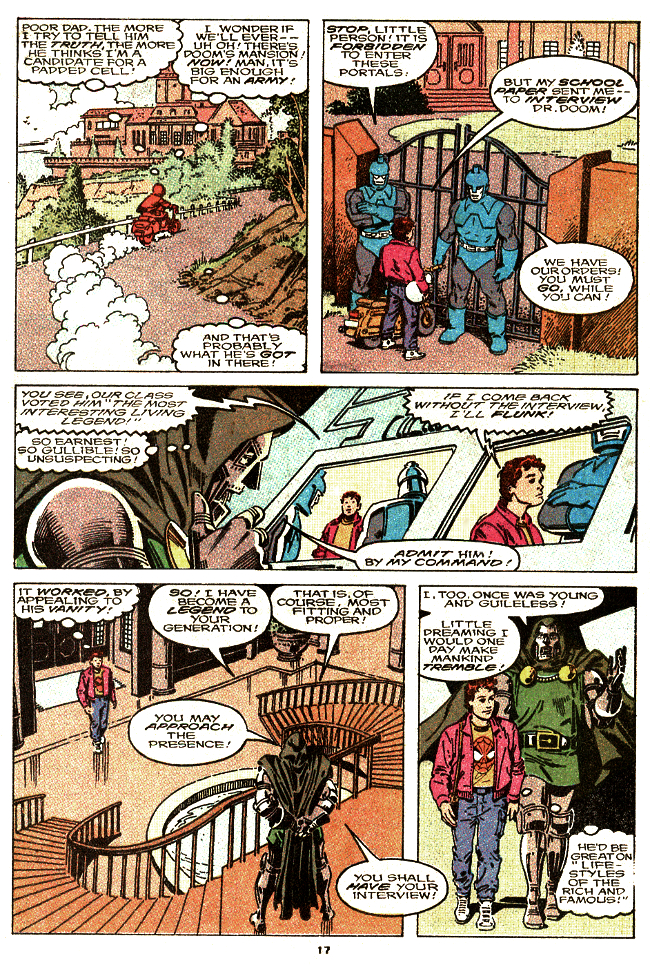 Okay, so Doctor Doom is about to hold our ozone hostage, and Ben thinks HE can get in to Doom's Embassy to stop him... he's just lucky that, for some reason, Doom thinks an article in the local school paper could be just the boost his image needs!: