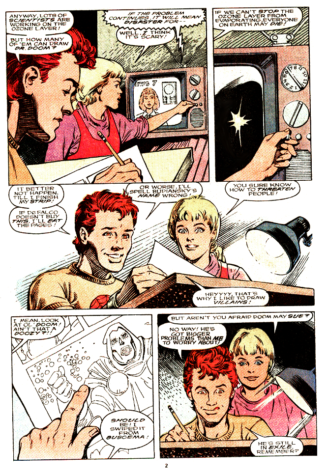 "Let them 'egghead scientists' worry about the ozone! -They can't even draw Doctor Doom! Not like ME!: I swiped Sal Bescuma! -And Marvel LOVES to hire tracers!